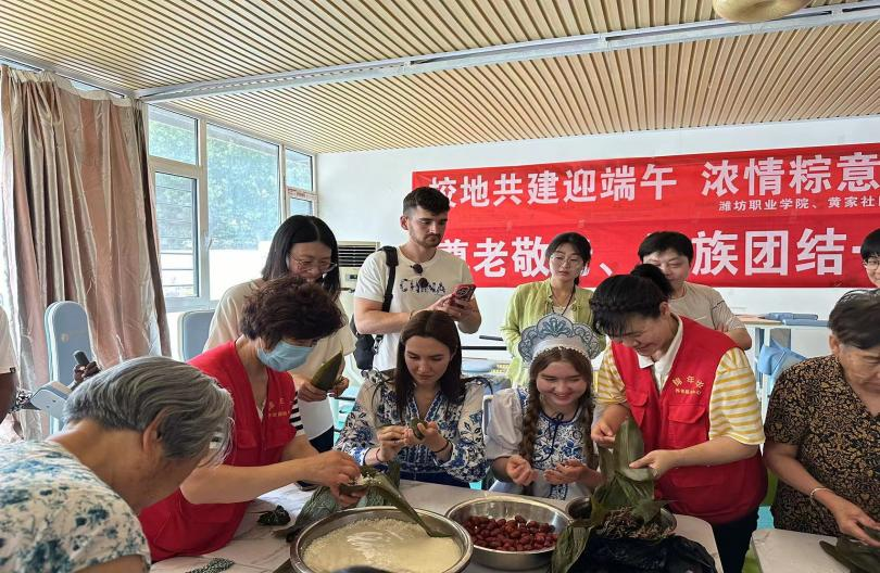 服务社区,尊老敬老、民族团结一家亲。通过本次校地共建迎端午特别活动的开展,学院留学生们进一步了解了中国的端午节文化,感受了爱老敬老的文化氛围与来自异国他乡的热情温暖。本次活动,也是学院留学生深入社区,服务潍坊城市建设的生动体现。学院将持续创新来华留学生“四结合”人才培养模式,为留学生打造丰富多彩的“第二课堂”,课内课外并举,培养会语言、懂技术、能融入的国际化人才。(付正 刘阳供稿)