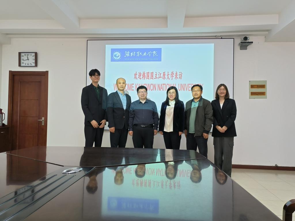 国际交流与合作处负责同志对张庆丰一行来访表示热烈欢迎,并介绍了学院的办学历史、发展成就、人才培养及国际交流等情况。对方就国立江原大学基本概况、专业设置、办学实力、国际学生培养等方面作了详细介绍,并表达了与我院建立友好合作关系的美好愿景。随后,双方就学生学历提升、师生互访等方面合作进行了深入探讨。