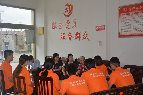 据悉,“青春飞扬”文化艺术服务团队在这为期六天的三下乡活动中,上午走访农村、社区的老党员,聆听老一辈革命家的故事;下午搞社会调查和学校招生宣传;傍晚开始整理文艺汇演的现场,晚上则给村民们带来一场丰富多彩的文艺晚会。