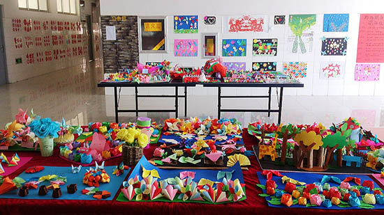 在师范学院展区,展出了2013级学前教育和2014级舞蹈表演专业学生的简笔画以及剪纸、染纸、折纸等纸工作品,这些作品造型生动可爱,色彩鲜明活泼,空间层次丰富,充满童趣的作品就像一个个童话故事,让人不禁驻足观看。