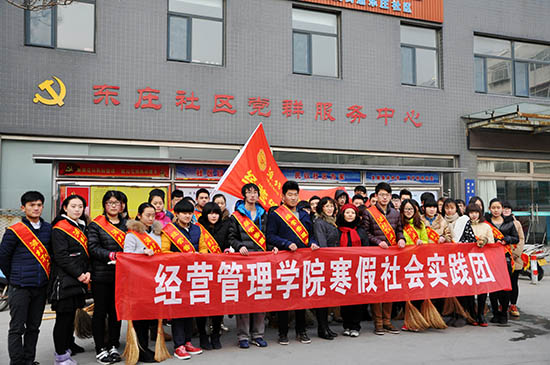 为积极响应学院团委发出的以“为祖国勤学修德·以实践明辨笃实”为主题的寒假社会实践活动,经营管理学院团总支组建了一支50人的志愿服务团队,并于1月29日上午到大虞街道办事处东庄社区开展了志愿服务活动,拉开了经营管理学院寒假社会实践的序幕。
