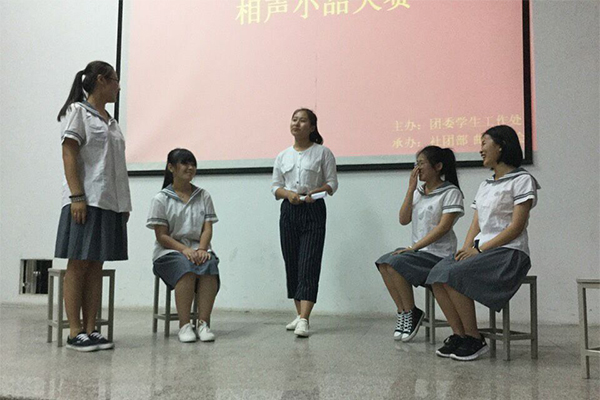由团委学生工作处主办、曲艺协会承办的相声小品大赛,6月1日在滨海校区举行。来自各二级学院的10支队伍参加了比赛。