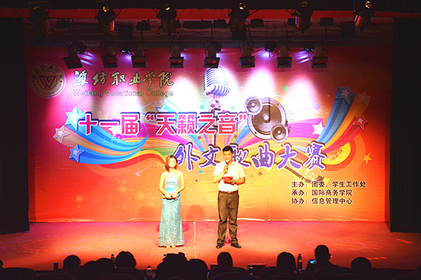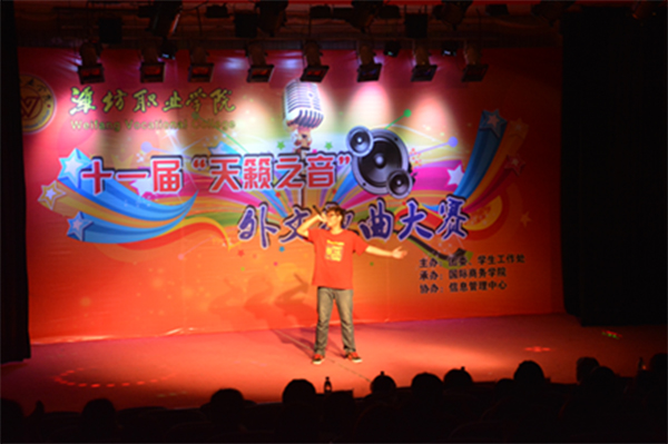 6月29日晚,由国际商务学院承办的第十一届“天籁之音”外文歌曲大赛在奎文校区报告厅举行。该活动为学院第十一届科技文化艺术节的系列活动之一,大赛评委由来自美国、韩国的外籍教师和各二级学院的教师代表担任。各二级学院学生代表观看了比赛。