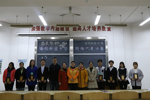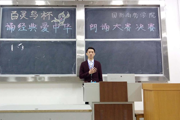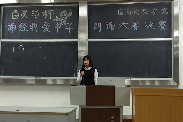 11月18日,国际商务学院“百灵鸟”演讲与口才协会举办“诵经典•爱中华”经典诵读比赛。该项赛事是第十届社团文化艺术节系列活动之一,旨在全院营造继承、弘扬中华经典,传承千年文明的氛围,为学生的成长提供更加强大的精神动力。