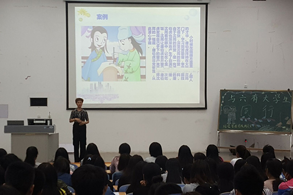 为培育青年学生社会主义核心价值观,展现大学生积极向上的精神面貌和青春活力,9月25日晚,经营管理学院举办“‘六有’大学生与我们同行”主题讲座。讲座由该学院优秀辅导员老师主讲,各年级学生代表参加了此次讲座。
