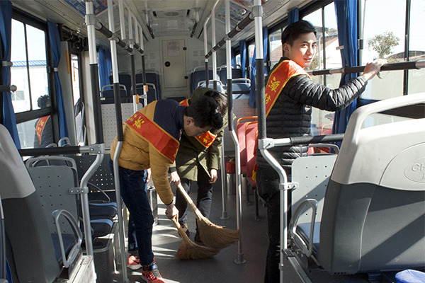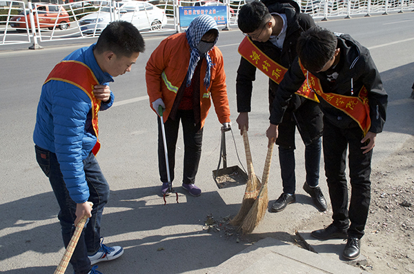 本次活动主要的是对央子汽车站以及附近的街道和站牌进行义务清理和打扫。虽然春寒料峭,但是参加活动的志愿者们却忙的热火朝天。首先大家对汽车站内的公交车、公交站牌进行了认真的清洁,并在公交车停靠期间对老幼病残等行动不便的乘客细心搀扶。同学们还热情帮助清洁工阿姨进行街道卫生维护工作。从正午时分忙到太阳西斜,虽然每个人的身上都带着灰尘,额头上都沾着汗水,每个人的脸上都挂着灿烂的笑容。(辛海明供稿)
