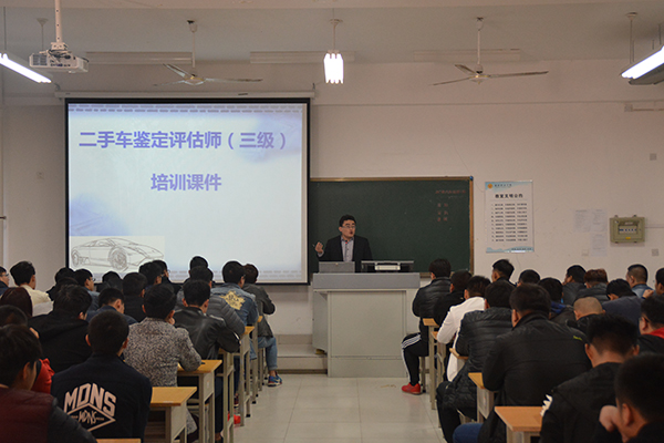 为促进大学生岗位技能的提升,提高学生职业技能鉴定考试合格率和学生执证率,汽车工程学院二手车鉴定评估师培训班于3月21日开班授课,2015级全体学生参加了培训。