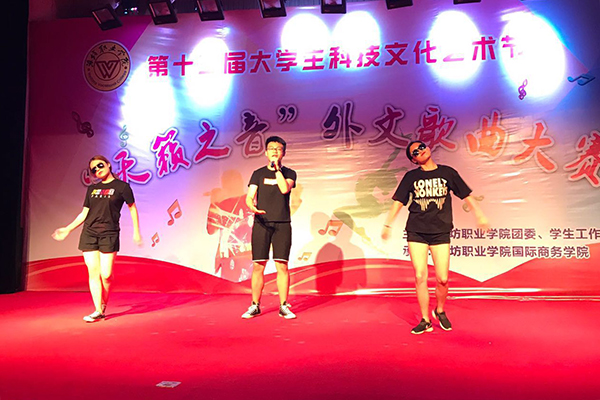 6月21日下午,国际商务学院第十三届“天籁之音”外文歌曲大赛在奎文校区报告厅举行。本次活动是第十三届科技文化艺术节活动之一。