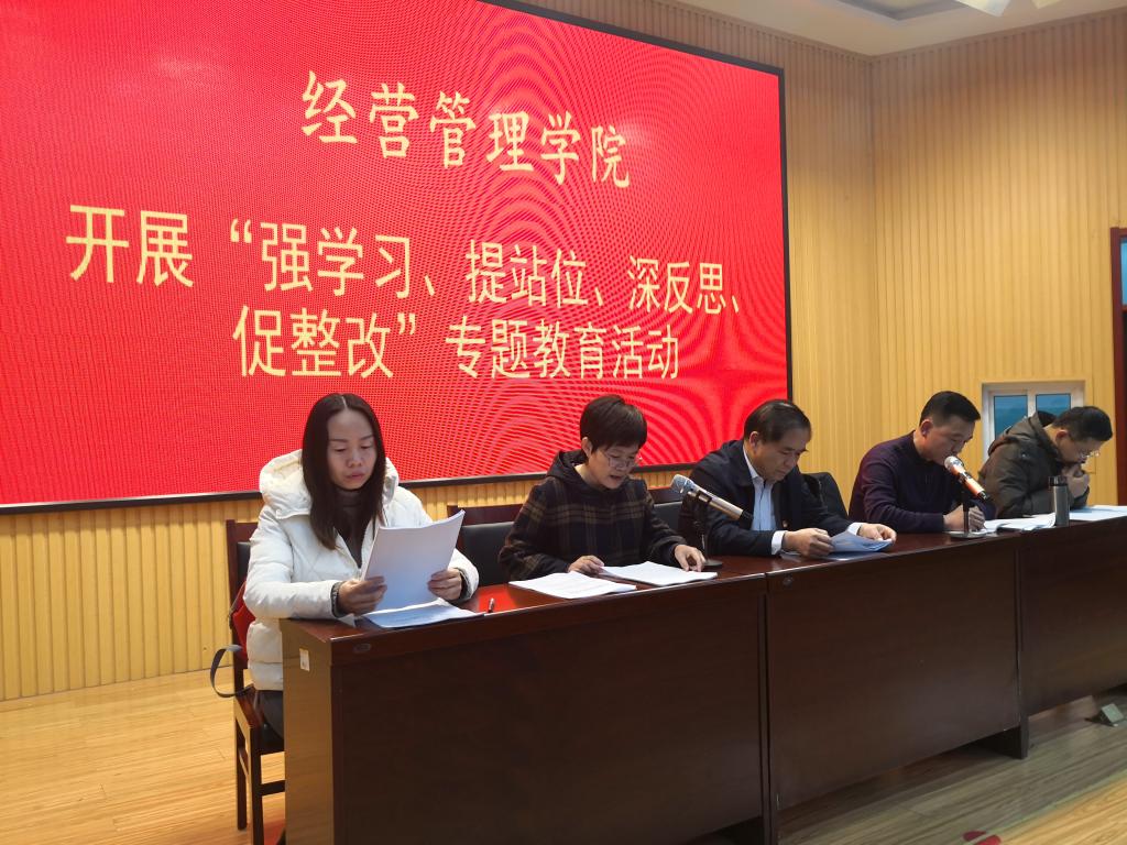 2月25日、26日,经营管理学院深入开展“强学习、提站位、深反思、促整改”专题教育活动。通过原原本本学上级文件、政策,深入开展案例剖析、交流讨论,每位教职工认真学习学校发放的学习材料,做好学习笔记并写出学习感悟,各科室对风险点进行拉网式排查,深入开展“强学习、提站位、深反思、促整改”专题教育活动,学院纪委书记郭晓辉出席活动。