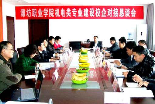 为推动名校建设工作进程,深化校企合作,提高专业建设水平和人才培养质量,11月20日下午,在潍坊市机电设备职教集团年会上,机电类专业建设校企对接恳谈会在滨海校区清泽楼222会议室召开。山东三元工业控制自动化有限公司、山东乐航节能科技股份有限公司、歌尔声学股份有限公司、山东捷远电气股份有限公司等十几家知名企业的总经理、人力资源部部长,机电工程学院负责同志以及各专业教研室主任和教师代表参加了会议。
