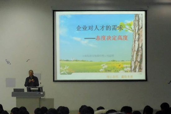11月27日下午,农业工程学院邀请玉成集团市场部经理刘忠国作了题为“企业对人才的需求”的讲座。农业工程学院滨海校区全体学生和部分教师参加了讲座。