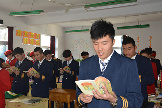 该院将《弟子规》、《三字经》、《礼记》、《论语》、《孟子》、《中华诗文名句精华》、《增广贤文》、《古诗文必背》等列为诵读必选内容,每个学期各班可根据不同的专业特点和学生特点补充自选内容。活动通知发出后,各班迅速行动,在班主任的带领下成立国学诵读小组,专门负责诵读活动。各班级按照要求每天上午、下午和晚上课前进行诵读。