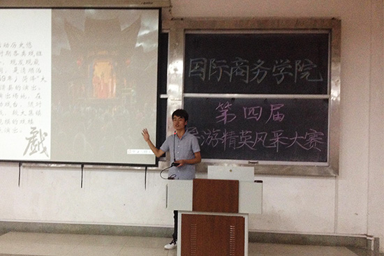 6月16日,由“百灵鸟”演讲与口才协会具体负责,国际商务学院承办的学院大学生科技文化艺术节系列活动之一“说家乡,秀中华”第四届导游精英风采大赛在9号楼101教室举行。