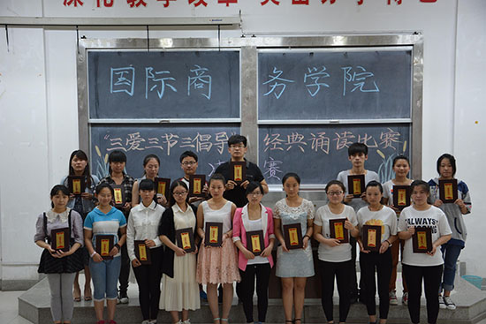 为弘扬传统文化,结合学院开展“内涵建设年”活动,提升大学生的思想道德素质和文明修养,由国际商务学院团总支与“百灵鸟”演讲与口才协会承办的第十届科技文化艺术节“三爱三节三倡导”经典诵读比赛,日前在9号楼101教室举行。