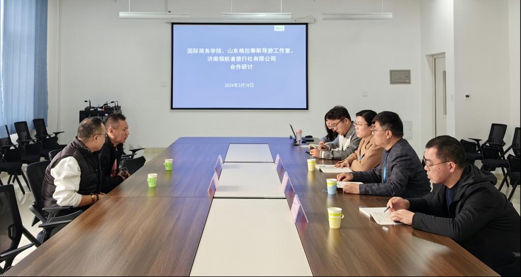 为推动访企拓岗,3月18日,国际商务学院与来访的济南领航者旅行社有限公司、山东格拉蒂斯导游工作室等企业围绕学生培训、实习就业进行了洽谈对接,国际商务学院班子成员、产学合作办公室、旅游管理教研室参加对接活动。