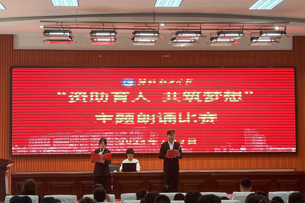 为充分发挥资助工作的思想引领和育人作用,培育受助学生爱党爱国情感和感恩意识,构建物质帮助、道德浸润、能力拓展、精神激励有效融合的资助育人长效机制,进一步提高我院学生资助工作水平。于7月3日下午,机电工程学院举办“资助育人,共筑梦想”主题朗诵比赛。