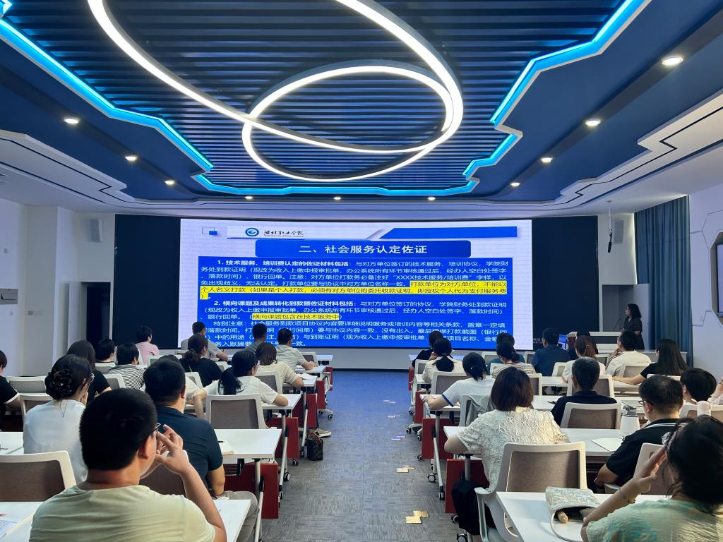 培训会邀请了科技处产学合作科负责人郭冕老师作了题为《社会服务到款认定政策解读》的专题培训。郭冕老师从国家政策、社会需求等多个角度,深入分析了当前面临的新形势、新任务和新要求,并结合实际案例,提出了高职院校社会服务的创新思路和方法。讲座内容丰富、案例生动,赢得了与会人员的阵阵掌声。