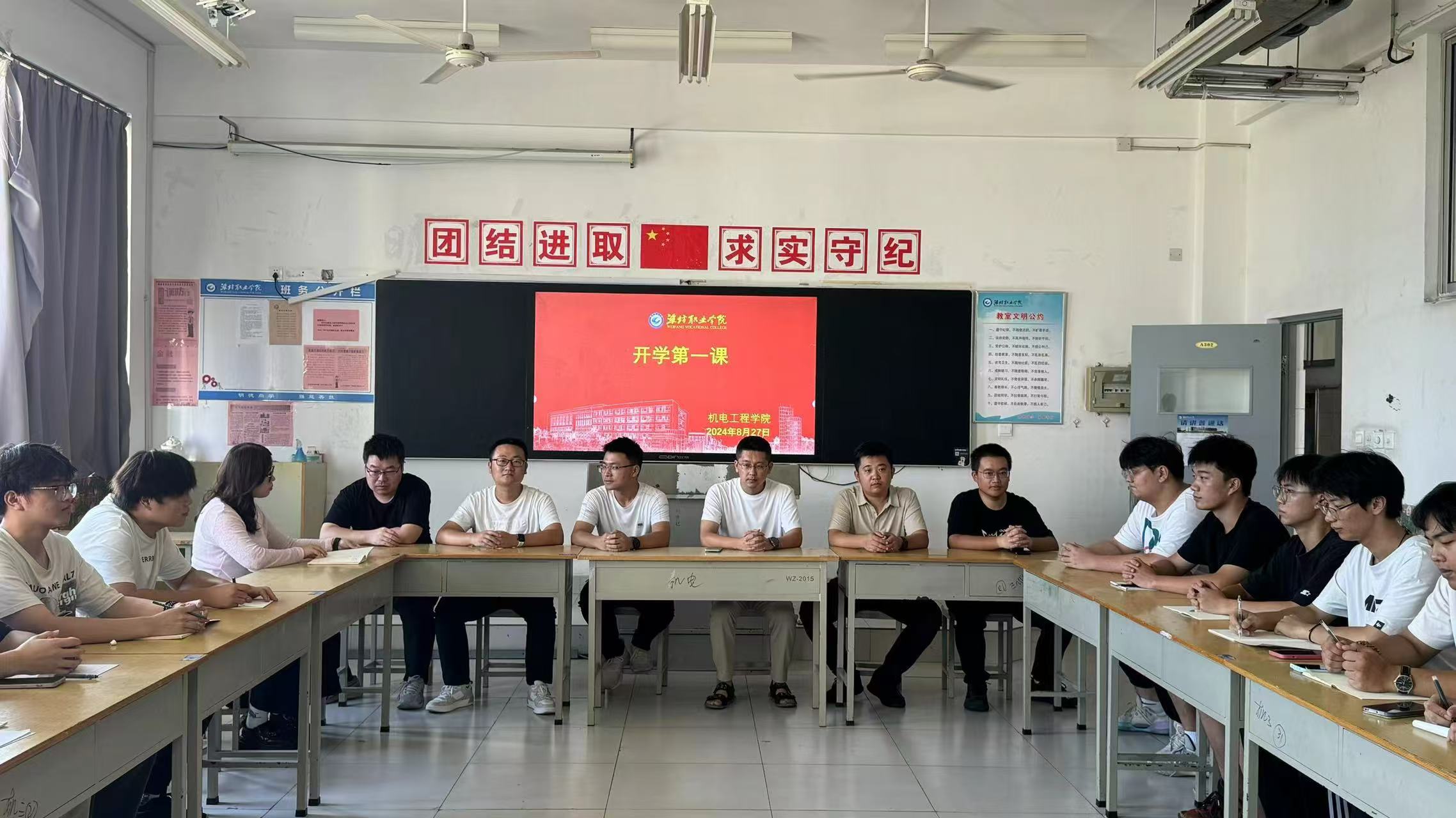 为深入贯彻落实党的二十届三中全会精神,进一步深化学生思想政治教育,引导学生坚定理想信念,以积极昂扬奋斗姿态投入新学期学习生活,8月26日晚,机电工程学院开展“开学第一课”活动,我院分管学生负责人主持活动,全体辅导员,团学干部和入党积极分子等学生代表参加。