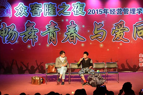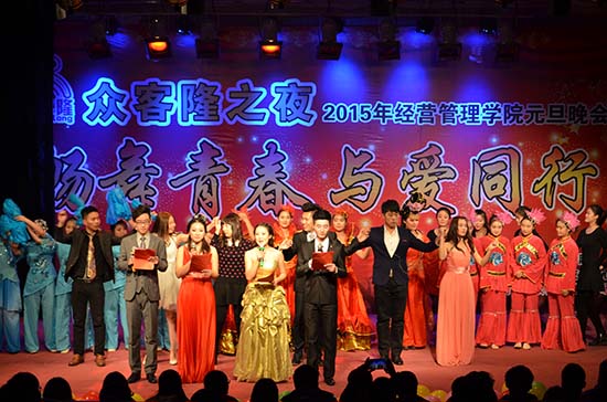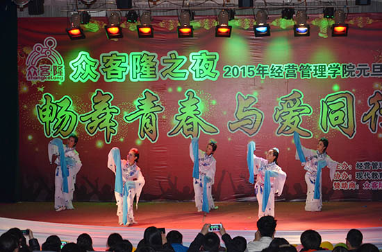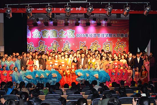 12月23日晚,经营管理学院“众客隆杯2015畅舞青春与爱同行”元旦晚会在学院报告厅举行。各职能部门领导、二级学院负责同志与经营管理学院全体师生观看了晚会。
