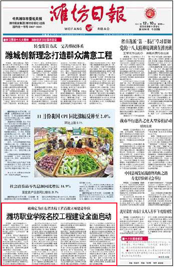 近年来,我市全力推进经济文化强市发展战略,大力推进蓝黄“两区”建设,积极推进国家职业教育创新发展试验区建设,为全市教育特别是职业教育发展创造了良好环境。潍坊职业学院“名校工程”建设立项,也是我市职业教育创新发展的一次重大突破。