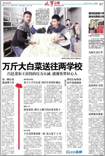 潍坊一中 体谅菜农,将车上剩下的白菜全收下