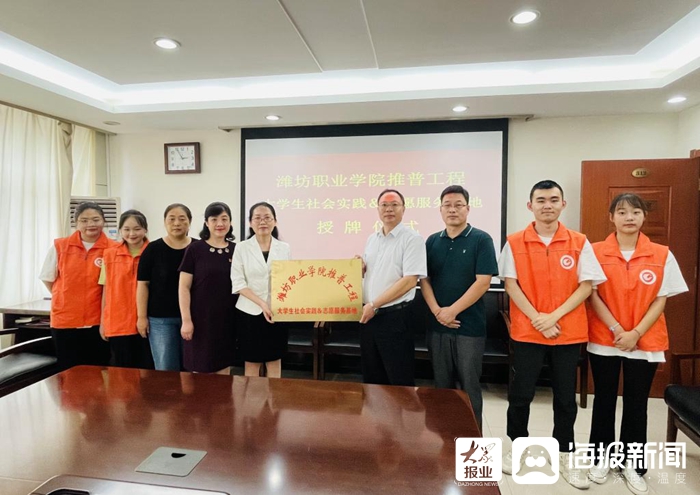 在北海路街道“推普进社区志愿服务项目”启动仪式上,北海路街道党工委副书记表达了对开展推广普通话进社区志愿服务的欢迎。他说,随着改革开放和社会主义市场经济的发展,社会对普及普通话的需求日益迫切。推广普及普通话,营造良好的语言环境,有利于促进人员交流,从而提升老百姓的生活质量。恰逢潍坊市委市府号召提高普通话使用率、普及率,提升广大市民语言能力,倡导微笑服务,共建全国文明城市,这对建设高品质城市有着积极的推动作用。李书记表示潍坊职业学院的“推普进社区志愿服务活动”,必将帮助北海路街道的社区群众形成浓厚的普通话氛围,助力街道经济社会更好更快发展。随后,双方举行了“潍坊职业学院推普工程”大学生社会实践与志愿服务基地授牌仪式。
