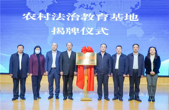 12月30日,农村法治教育基地揭牌仪式在潍坊职业学院奎文校区举行。潍坊市政府党组副书记、副市长马清民,潍坊职业学院党委书记马跃启共同为农村法治教育基地揭牌。潍坊市司法局党委书记、局长孙淑芳,潍坊市农业农村局党组成员、潍坊市农业技术推广中心主任李秀丽,潍坊市财政局党组成员、副局长李立东,北京凯德现代农业研究院院长李继凯,潍坊职业学院继续教育学院、思政部、农林科技学院及相关二级学院师生代表90余人参加揭牌仪式。潍坊职业学院副院长贺志强主持揭牌仪式。