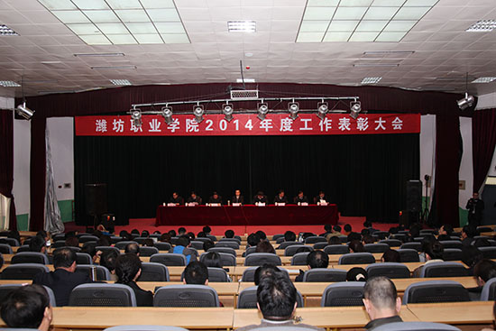 3月26日,学院在奎文校区报告厅隆重举行2014年度工作表彰大会,表彰在2014年度为学院建设发展作出积极贡献的先进集体和先进个人,激励全体教职员工凝心聚力、开拓进取、扎实工作,全面推动学院事业创新发展。学院领导班子成员出席大会。潍坊市政府党组成员、学院党委书记陈仁杰主持会议。