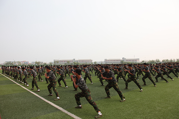军训学生进行了精彩的军体拳表演,博得全场热烈喝彩。