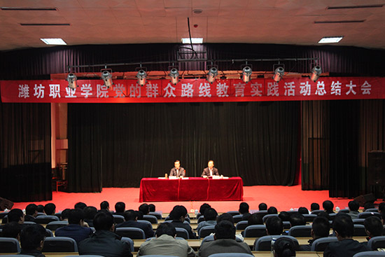 11月1日下午,学院召开党的群众路线教育实践活动总结大会。潍坊市政府党组成员、学院党委书记陈仁杰主持会议并作总结讲话。市委督导组组长黄永健出席并讲话。督导组成员、学院领导班子成员出席。各部门、各二级学院党政中层正副职以及学院党的群众路线教育实践活动领导小组办公室全体人员参加了会议。
