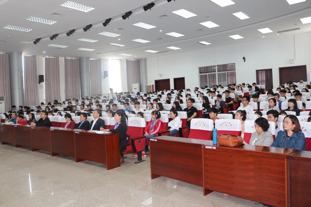 4月19日下午,学校第六十四次“企业家进校园”活动报告会在清泽楼报告厅举行。潍坊康华生物技术有限公司董事长杨致亭作了“适应社会,走向成功”的报告。科技处(产学研合作中心)相关人员和食品药品学院300余名师生参加报告会。