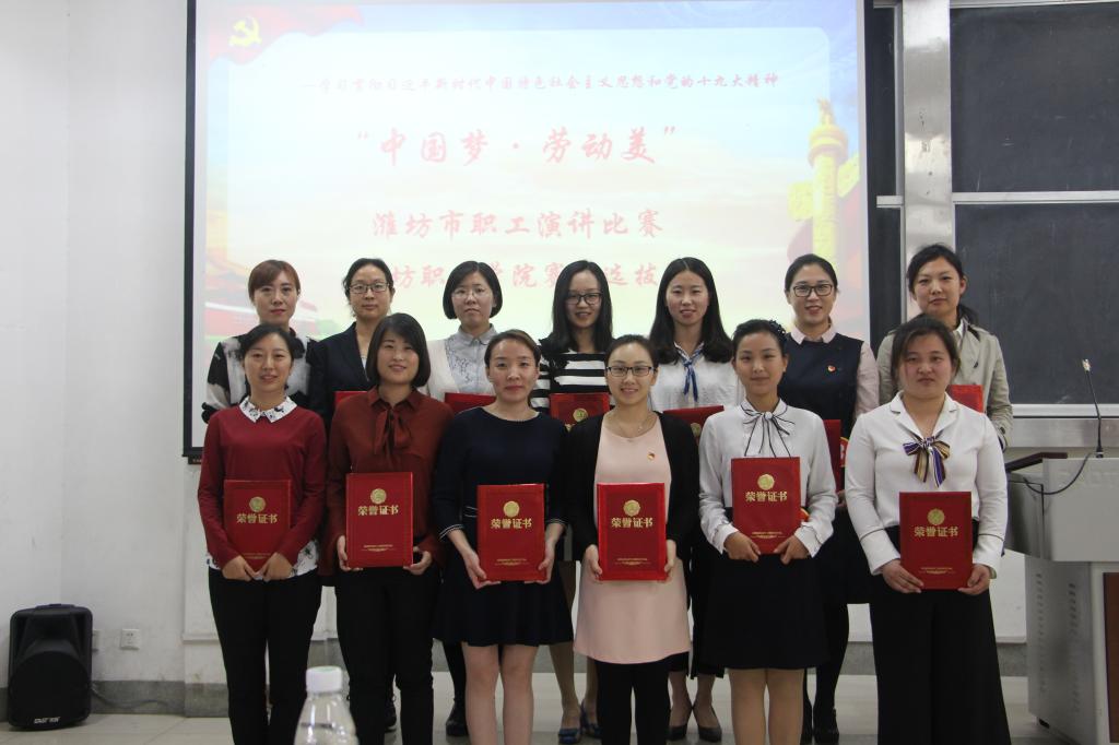 5月10日下午,学院在奎文校区举行“中国梦·劳动美——学习贯彻习近平新时代中国特色社会主义思想和党的十九大精神”全市职工演讲比赛潍坊职业学院赛区选拔赛。