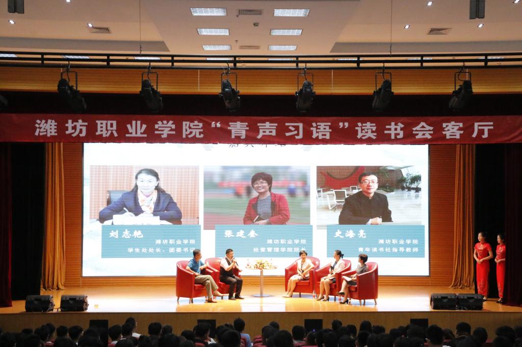 6月6日下午,由学院团委学生处、图书馆主办,经营管理学院承办的首期《青声习语》读书会客厅活动在学院图书馆报告厅举行。学院团委书记学生工作处处长刘志艳、图书馆馆长翟立红、经营管理学院院长张建奎、青年读书社指导老师史海亮作为访谈嘉宾和学院第四期“青马班”全体学员、各二级学院学生代表共450人参加了此次活动。