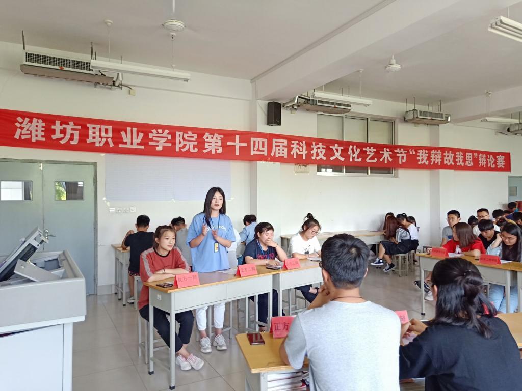 青春智慧逐梦想,妙语博论绽风采。6月14日下午,由潍坊职业学院团委主办,经营管理学院承办的潍坊职业学院第十四届科技文化艺术节“我辩故我思”辩论赛总决赛在惠泽1号楼A区114教室举行。各二级学院团总支老师、学生会负责人等200余名师生共同观看了比赛。