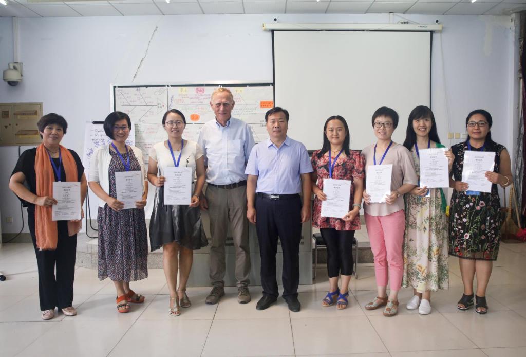 7月20日,学院2018年德国职业教育教学法高级培训班圆满结束。学院副院长贺志强与德方专家Dr.H.J.Ba博士共同为培训学员颁发证书。本次培训班主题是德国职业教育理念以及行为导向的德国职业教育教学法培训。主讲教师由德国著名职业教育专家Dr.H.J.Ba博士担任,我院共80名专业骨干教师参加了为期两周的培训。