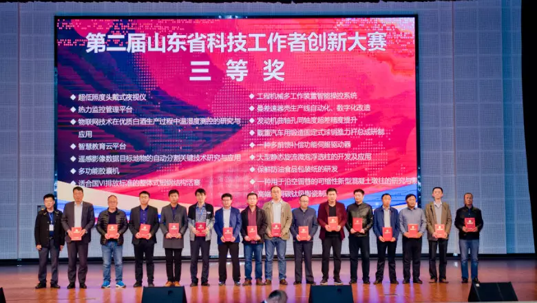 第二届山东省科技工作者创新大赛由山东省科学技术协会举办,是省科协开展的“助力创新驱动发展工程”的重点项目,旨在激发广大科技工作者创新创业热情,促进科技成果转化,服务于我省新旧动能转换,涉及我省新旧动能转换“十强产业”,从新一代信息技术、高端装备、新能源新材料、高端化工、医疗健康、现代海洋、现代高效农业、交叉领域共8大命题领域。大赛自7月份启动,汇集了省内14地市,300余家高校、企业、科研院所、孵化器及科技组织推荐的项目高达367项,其中潍柴动力、国家电网、中国重汽集团、山推、济南二机床、福田雷沃、古贝春、景芝酒业、渤海活塞、西王特刚、山东农业大学、鲁东大学、山东交通大学、山东机械研究所等大型企事业单位参与加。经过初审、网络投票、复赛专家会评,最终遴选出125个优质项目参加现场决赛。11月2日决赛现场经过省内外15位评审专家学者对进入决赛项目的申报资料核查、现场问询、答辩等环节,最终评选出一等奖15项、二等奖26项、三等奖31项。山东省科学技术协会党组成员、副主席纪洪波(正厅级)、枣庄市市委副书记梁宪廷等领导出席大赛颁奖典礼并致辞。