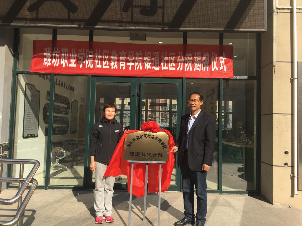 11月3日上午,潍坊职业学院与新钢街道银通社区“社区学院”共建活动揭牌仪式在银通社区广场隆重举行。学院副院长赵君堂、新钢街道副书记刘丽梅、银通社区主任蔡绪雷、继续教育学院负责同志和相关人员出席了揭牌仪式。