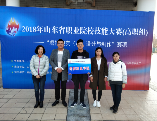 11月14日,2018年山东省职业院校技能大赛(高职组)“虚拟现实(VR)设计与制作”赛项在山东电子职业技术学院举办,来自全省高职院校的35支代表队参加了本次比赛。我校信息工程学院学生赵术涵、李浩、崔宁组成的参赛队,经过4个小时的激烈角逐,最终以优异的成绩获得一等奖,指导教师朱丽兰、刘萍荣获“优秀指导教师”称号。