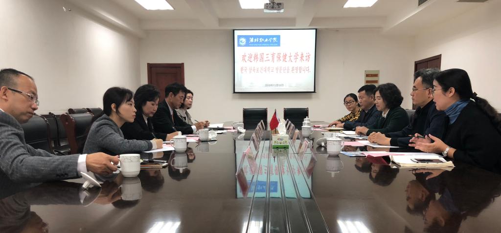 11月15日,韩国三育保健大学美容美发系主任教授安庆敏、国际交流部部长姜永锡等一行5人到我院访问,国际交流与合作处负责同志在奎文校区接待了客人,现代服务业学院和化学工程学院的相关负责同志及教师参加了座谈交流。