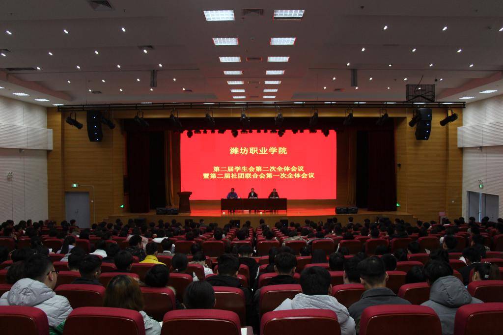12月20日下午,学院第二届学生会第二次全体会议暨第二届社团联合会第一次全体会议在滨海校区图书馆报告厅召开。团委学生工作处主要负责同志出席会议并讲话。各二级学院团总支负责同志、2018年学院学生会全体成员、奎文校区学生会主席团成员、各二级学院学生会主席团成员、学院社团联合会、新媒体工作室全体成员参加大会。