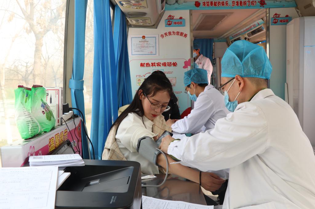 活动现场,气氛高涨,志愿者们给前来咨询的同学讲解无偿献血的知识,献血者进行填表、化验、抽血……所有的流程都井然有序地进行,青年学生是志愿精神的前行者,引领者,一股股青春热血,一颗颗爱心满怀,他们用实际行动为社会接力温情、延续感动。