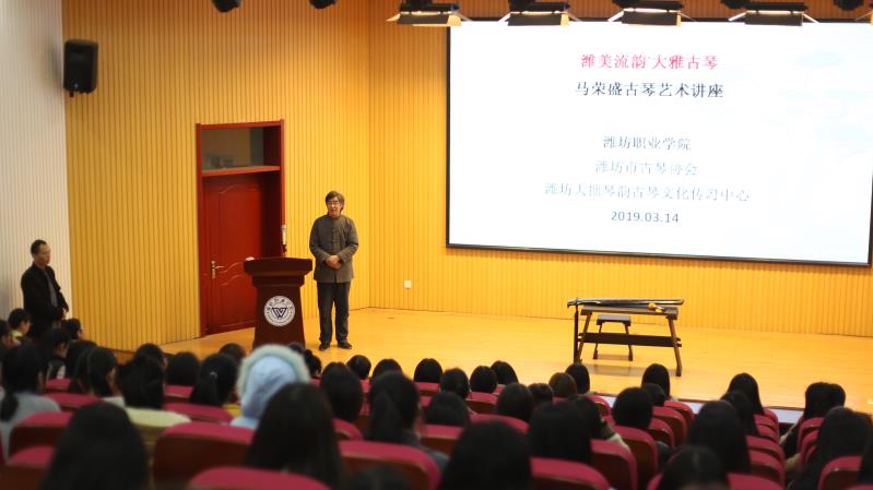 3月14日下午,学院第三十五场人文素养讲座在奎文校区创业中心报告厅举办,诸城派古琴第六代传承人马荣盛先生携其三位弟子为同学们作了一场关于古琴艺术的讲座,奎文校区150名学生聆听讲座。