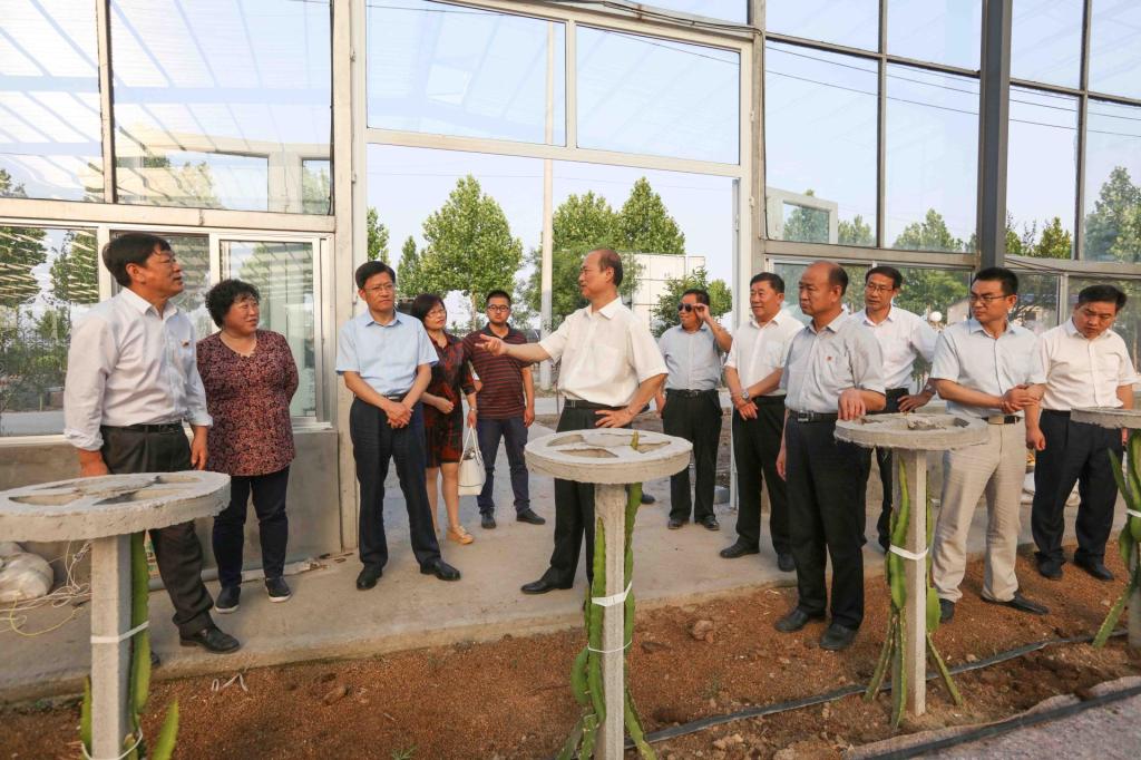 马跃启等学院领导还实地调研了村里的火龙果等产业项目。(董宝成供稿)