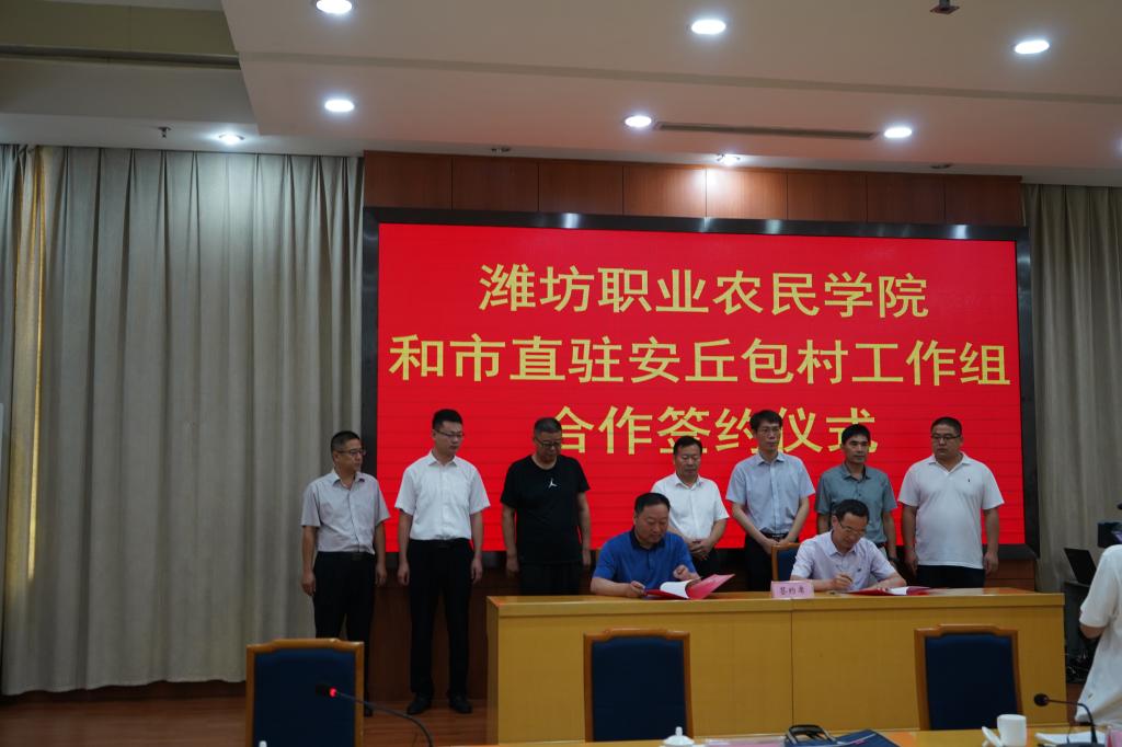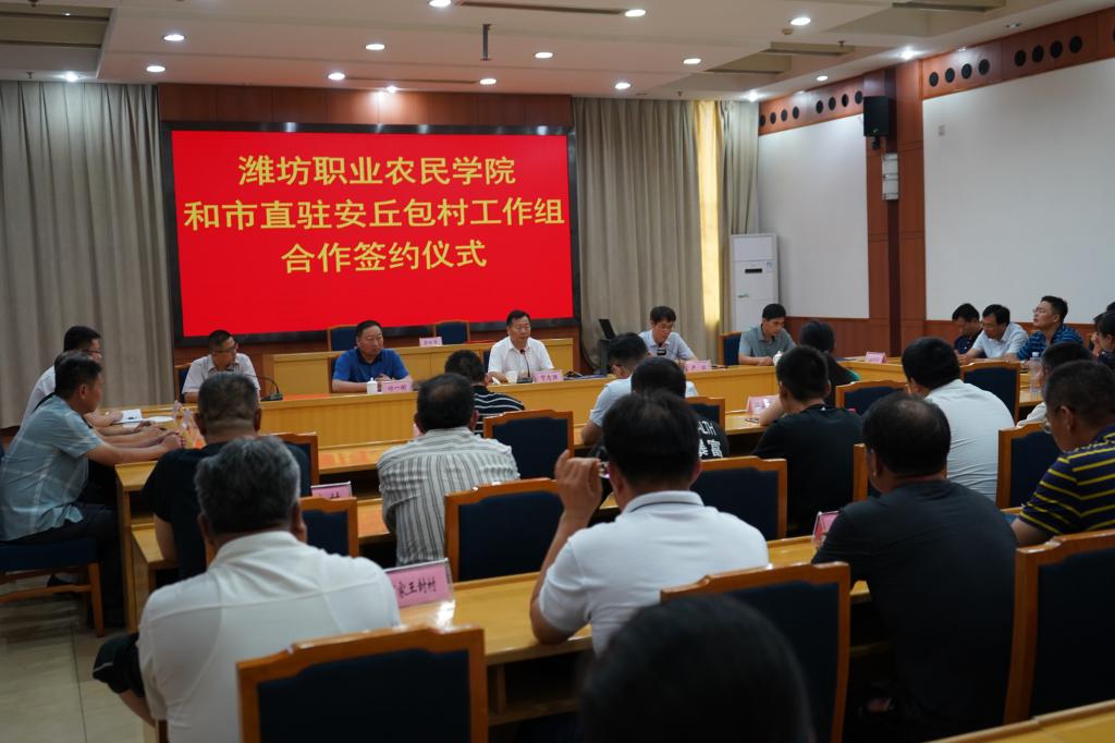 7月16日,潍坊职业农民学院和潍坊市直驻安丘包村工作组合作签约仪式在安丘市政府会议大厅举行,学院副院长贺志强,安丘市委常委、副市长卢波,潍坊职业农民学院负责人及相关同志、安丘市农业农村局等相关部门负责人参加签约仪式。
