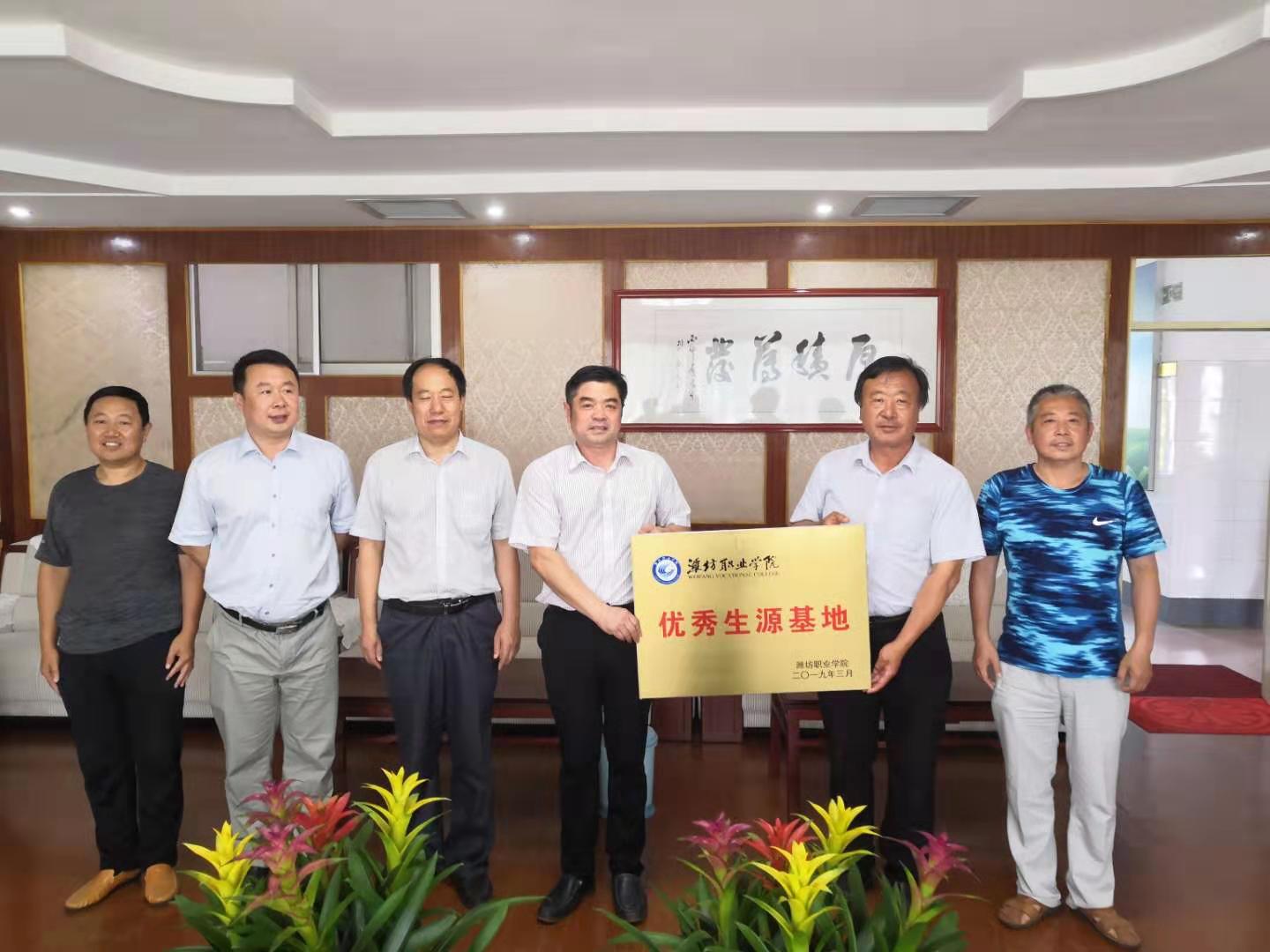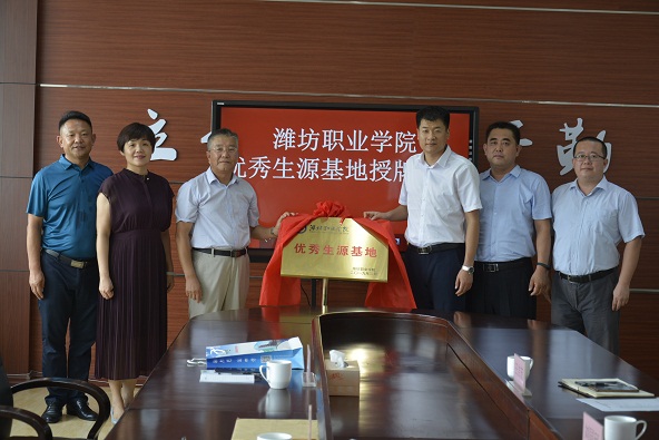 为加强学院与省内优秀生源高中(中职)学校的沟通联系,扩大学院社会影响力,提升美誉度、知名度,吸引优质生源报考,提高生源质量,经生源学校申报,学院组织评审,授予青岛市胶州第四中学、淄博市第十中学、临沂市莒南县第五中学、临港经济开发区第一中学、日照海曲高级中学、青岛城阳区中等职业学校、青岛高新职业学校、阳信县职业中专、惠民县中等职业学校、临沂市农业学校、临沂市工业学校、日照市科技中专、日照市海洋工程学校、泰安市工商中等专业学校等14所普通高中(中职)“潍坊职业学院优秀生源基地”称号。