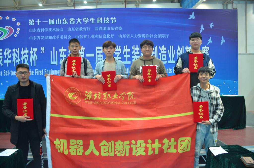 10月18日第十一届山东省大学生科技节暨山东省第一届大学生装备制造业创新大赛在潍坊鲁台会展中心圆满结束,我院““产线替代者”——全自动织毯机”和“六自由度并联平台加编码器位移分析装置”2个项目获得一等奖,“微型耳机MIC智能分选插接系统”等2个项目获得二等奖,“3—RRR平面写字机器人”等6个