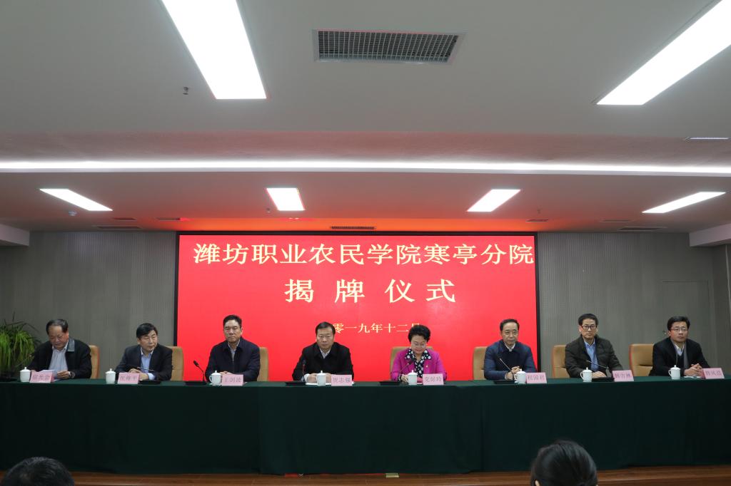 12月28日、29日,潍坊职业农民学院昌乐、寒亭分院揭牌仪式分别在昌乐县五图街道庵上湖村、潍坊食品谷办公大楼举行。学院副院长贺志强,昌乐县委副书记徐莹、副县长相伟,寒亭区副区长党好玲、潍坊市农业农村局领导王金林、柳洪艇,潍坊市农广校校长程国君,继续教育学院、潍坊职业农民学院相关负责同志分别出席揭牌仪式。