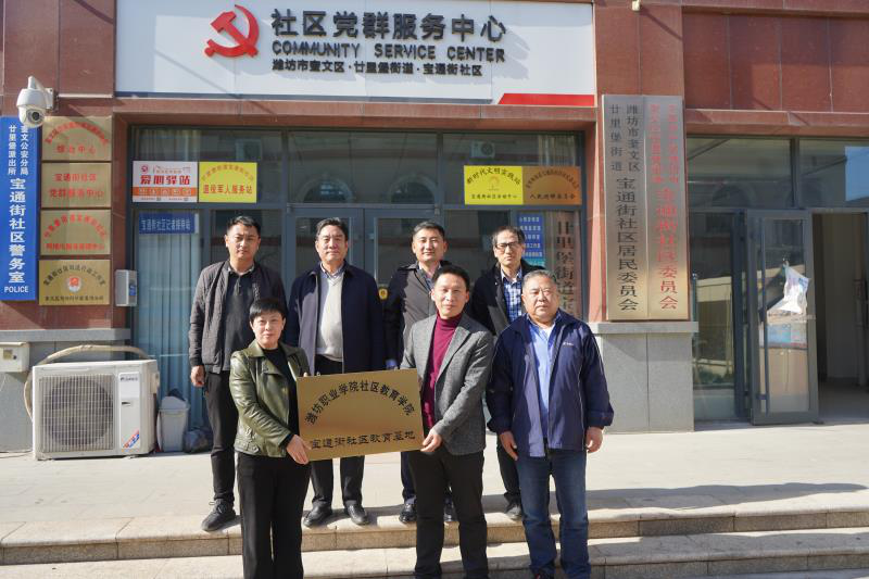 4月21日下午,潍坊职业学院社区教育学院宝通街社区教育基地揭牌仪式在潍坊市奎文区宝通街社区居委会举行,继续教育学院负责同志出席揭牌仪式。奎文区二十里堡街办党工委宣传委员刘新磊主持了揭牌仪式,继续教育学院负责人与宝通街社区居委会主任吕静书记签订社区服务协议,开启了我院和社区二级联办的社区服务模式。