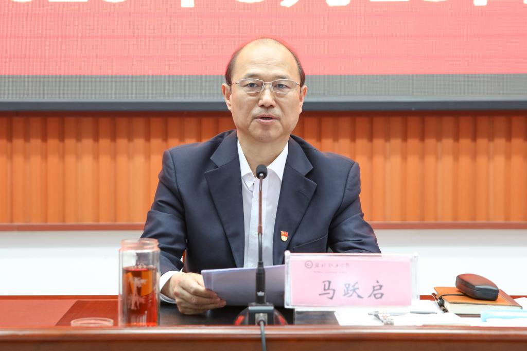 党委书记马跃启就抓好学院党的建设和党风廉政建设,引领学院高质量发展作了重要讲话,充分肯定了一年多来学院党的建设和党风廉政建设的成绩,也查摆了问题与不足,对下步工作进行了安排部署,并对认真履行党建职责和加强自身建设提出五点要求。一要坚定理想信念。以习近平新时代中国特色社会主义思想为指导,增强“四个意识”,坚定“四个自信”,做到“两个维护”,坚持“严”的总基调,全面从严加强党的建设和党的领导,以党的建设引领学院事业高质量发展。二要保持政治过硬。把讲政治作为根本要求,在思想上讲政治立场、政治方向、政治原则、政治道路,在行动实践上讲维护党中央权威、执行党的政治路线、严格遵守党的政治纪律和政治规矩。三要敢于担当作为。发扬求真务实、真抓实干、勇于担当的作风,树立“功成不必在我”的境界,脚踏实地把学院既定目标、蓝图变为现实。四要提高过硬本领。自觉对照要求,补齐本领上短板、能力上不足。坚持终身学习,全面提高领导能力和干事本领,为“双高/职教高地”建设和高质量发展贡献力量。五要淬炼过硬作风。把落实中央八项规定精神化作自觉行动,深入一线倾听师生呼声,在服务师生及学院发展中自觉进行自我斗争、自我革命。把法律的戒尺、纪律的戒尺、制度的戒尺、规矩的戒尺、道德的戒尺牢记于心,做到心有所戒、行有所止。加强道德修养,弘扬社会主义核心价值观,练就过硬的作风。