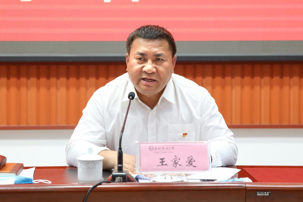 院长王家爱主持会议,并就贯彻落实好会议精神提出三点要求:一是要认真贯彻落实会议精神。把传达学习学院这次会议精神作为一项重要政治任务,学深悟透落实落细。将全院党员干部和教职工的思想、行动统一到本次会议的部署要求上来,坚定不移地加强党对学院工作的全面领导,不断提高党建和党风廉政建设工作质量和水平。二是要强化责任担当。进一步明确职责范围内的党建和党风廉政建设领导责任、主体责任,自觉履行“一岗双责”规定,统筹协调党建及党风廉政建设与业务工作同部署,同落实,同检查,同考核。加强廉政风险防控体系建设和监督执纪“四种形态”,形成“全链条”推进党建工作的格局。三是要统筹疫情防控和事业发展。进一步提高认识,强化措施,压实责任,不松气、不懈怠,全力抓好疫情防控和复学工作,确保广大师生的绝对安全。同时,要紧紧围绕“双高/职教高地”建设任务,把握发展大势,抢抓发展机遇,全面推进各项重点工作攻坚,确保全年目标任务的贯彻落实。